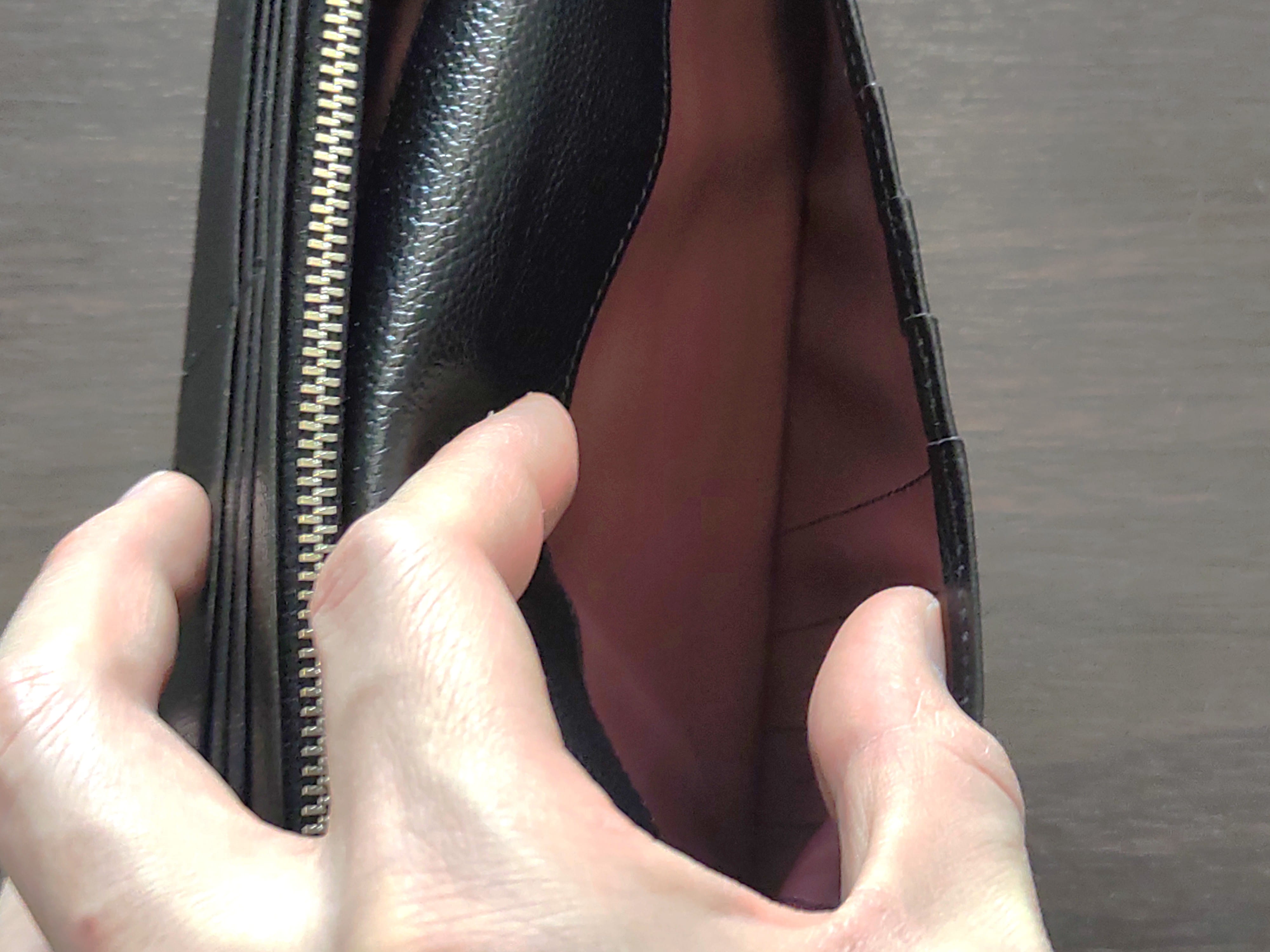 このうちブラックは、内側にワインレッドが使われています。