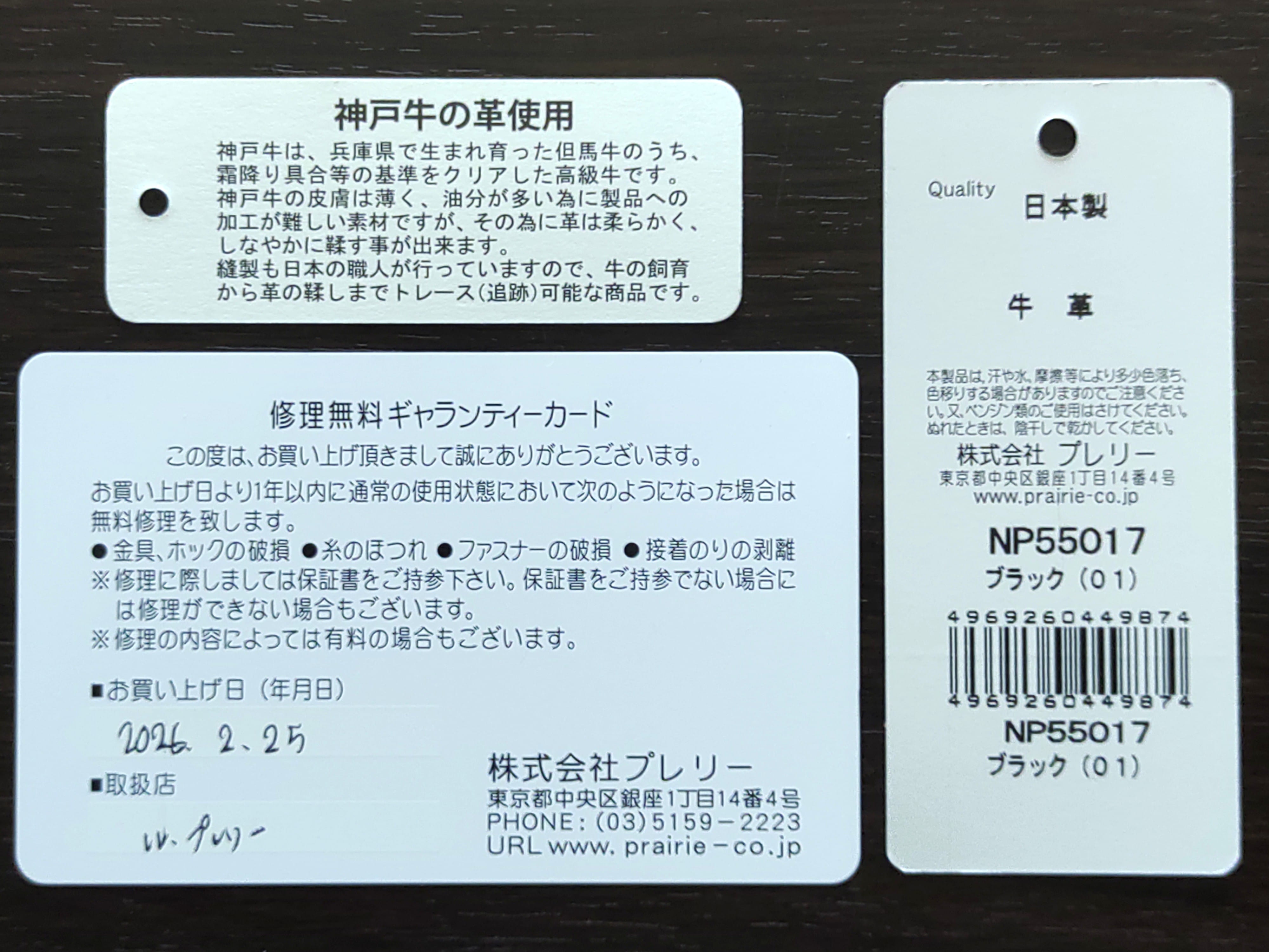 プレリーの協力タンナーがロッドNo.で管理された神戸牛の原皮を仕入れ、同じ兵庫県内で鞣し(なめし)を行っているそうです。