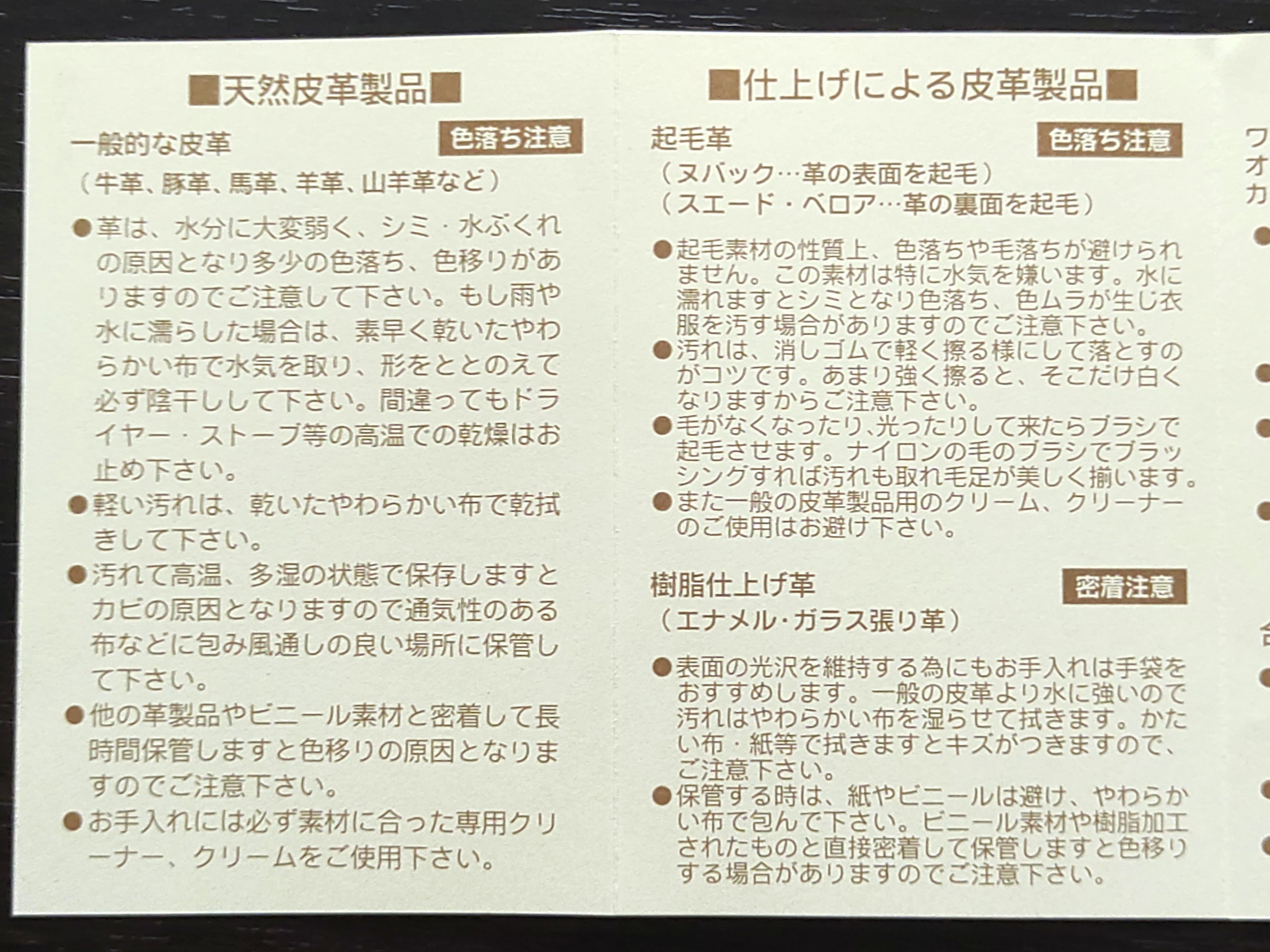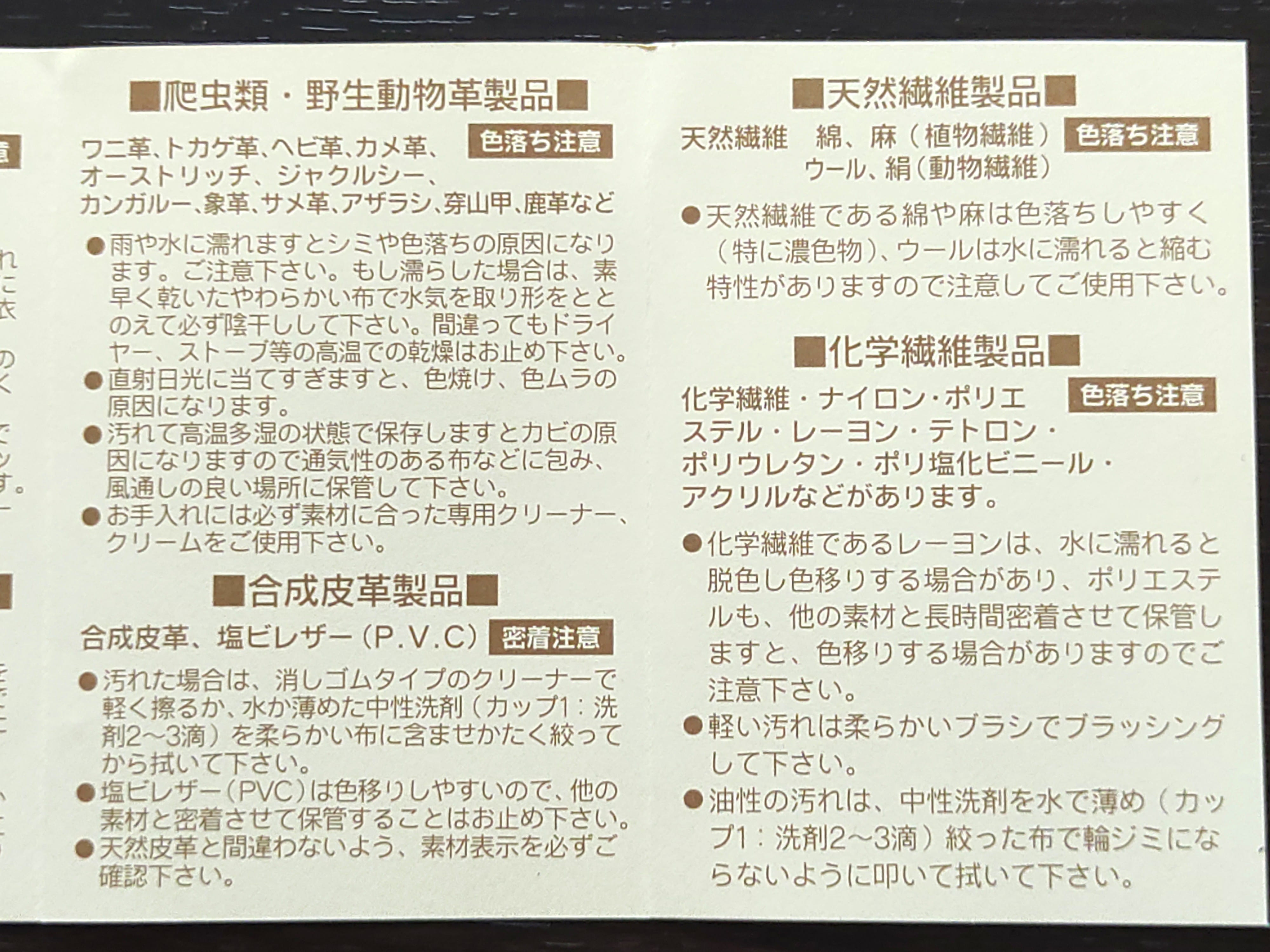 お取り扱いのご注意とお手入れ保管方法